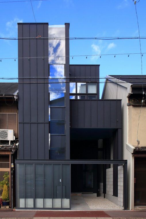 密集した敷地の間口は5.5m。押壁工法により間口5mの家…