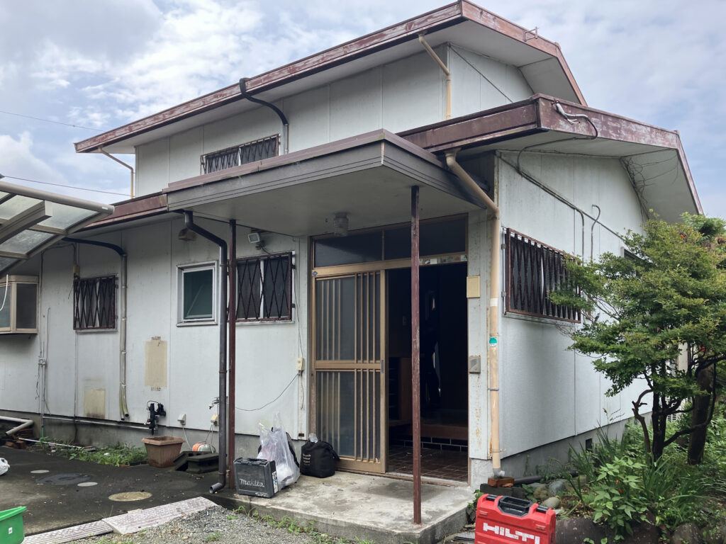 クライアントの父親が建てたものだが、両親とも他界してからは空き家となっていた。クライアントは隣地に建てた戸建て住宅に奥様と二人で住んでいたが、息子家族のUターンを機に空き家のほうを改修して移り住み、今住んでいる家のほうに息子家族が住むという計画である。
